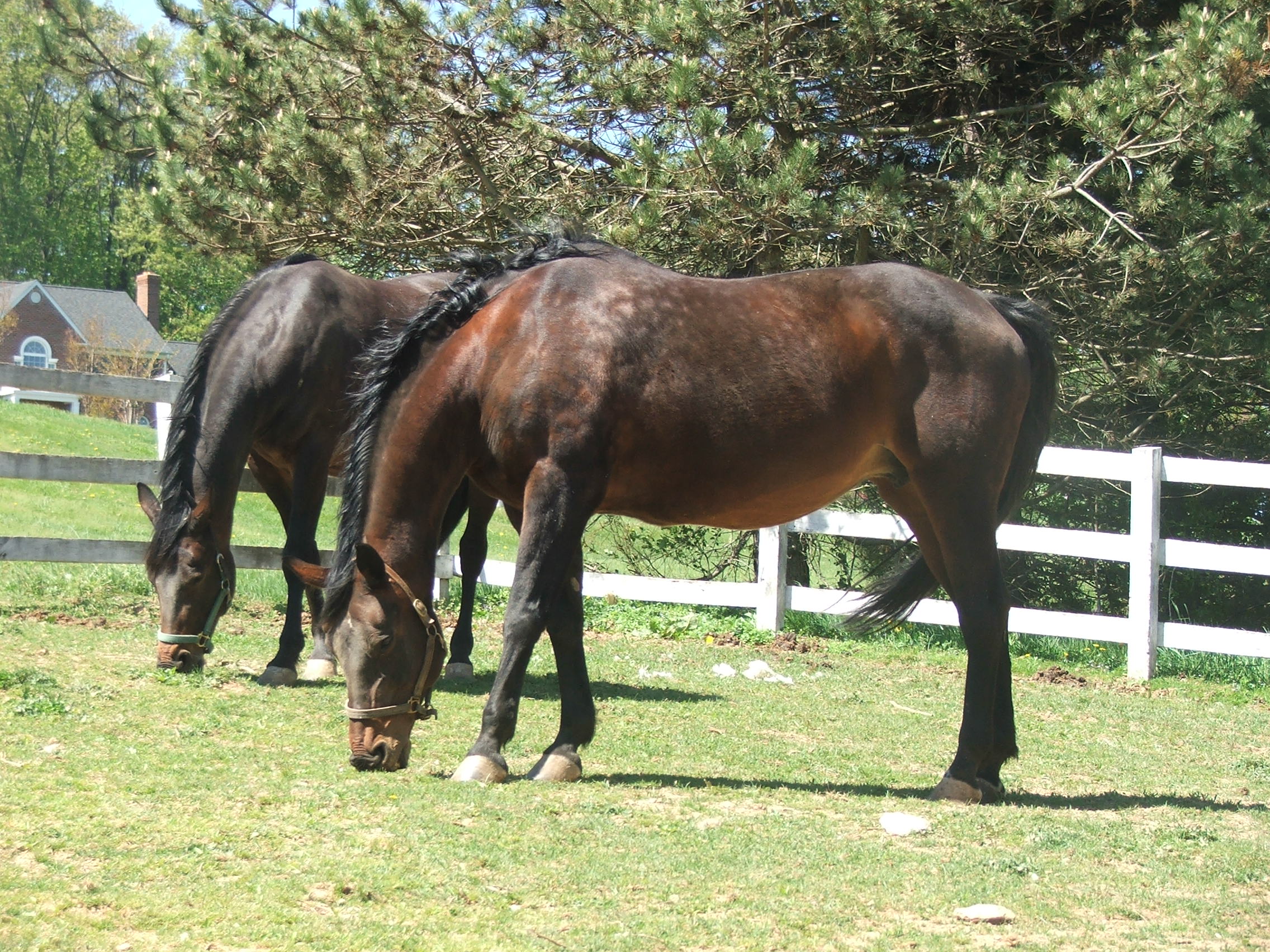 Trevi and Farethewel were turned out together each day. Trevi was in charge in a kind, calm assertive way. Trevi and Farethewel grazed side by side, parallel, like a reflection. Trevi would always come to the gate first for dinner, pushing ahead to assert her seniority. The funny thing is that if Farethewel took too long to get to the barn, then Trevi would grumble and nicker, showing that she already missed her companion even after just leaving Farethewel in the pasture to rush in for dinner. Trevi and Farethewel shared a stall wall with boards that left just enough space between the boards for Trevi and Farethewel to stretch their lips and nuzzle eachother through the boards. They did this often. At night, the two friends would press up against their shared stall wall and rest standing next to eachother. At other times, they would rest by the stall wall in their relaxed sternum positions. Farethewel misses Trevi tremendously now – day and night.