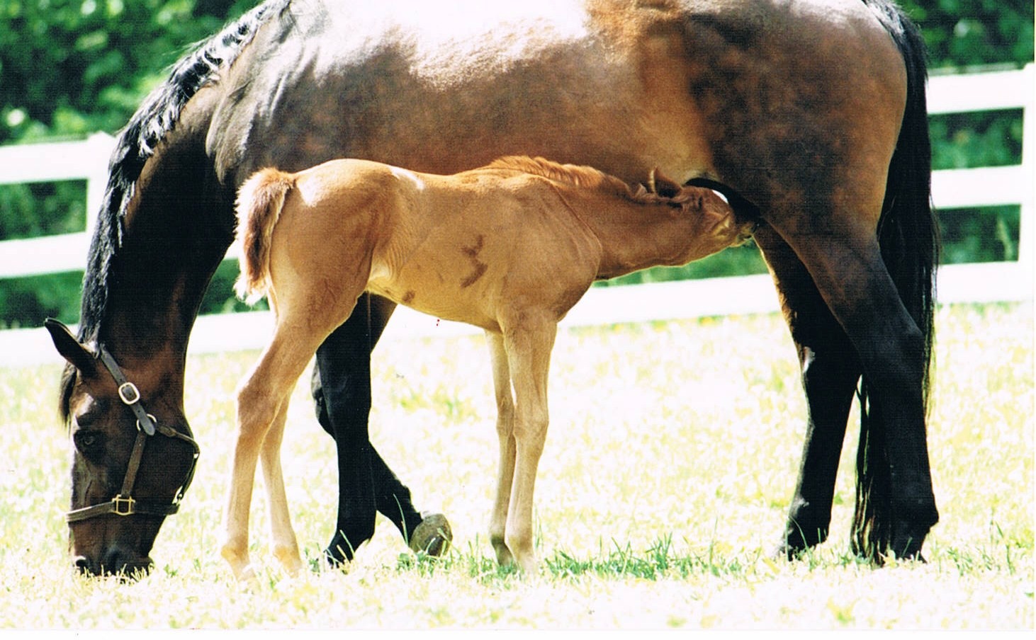 Trevi was a loving and nurturing mare. From the moment that her foals were born, her intense bond with her foals was evident. She nickered to her newborns in her deep passionate voice, smothering the baby foals with kisses. She cradled her foals under her neck, encouraging them to nurse with a gentle nuzzle. She stood tirelessly over her foals for the first 5 days of their lives, rarely even taking time to drink or eat, not wanting to leave their side in those vulnerable first days.