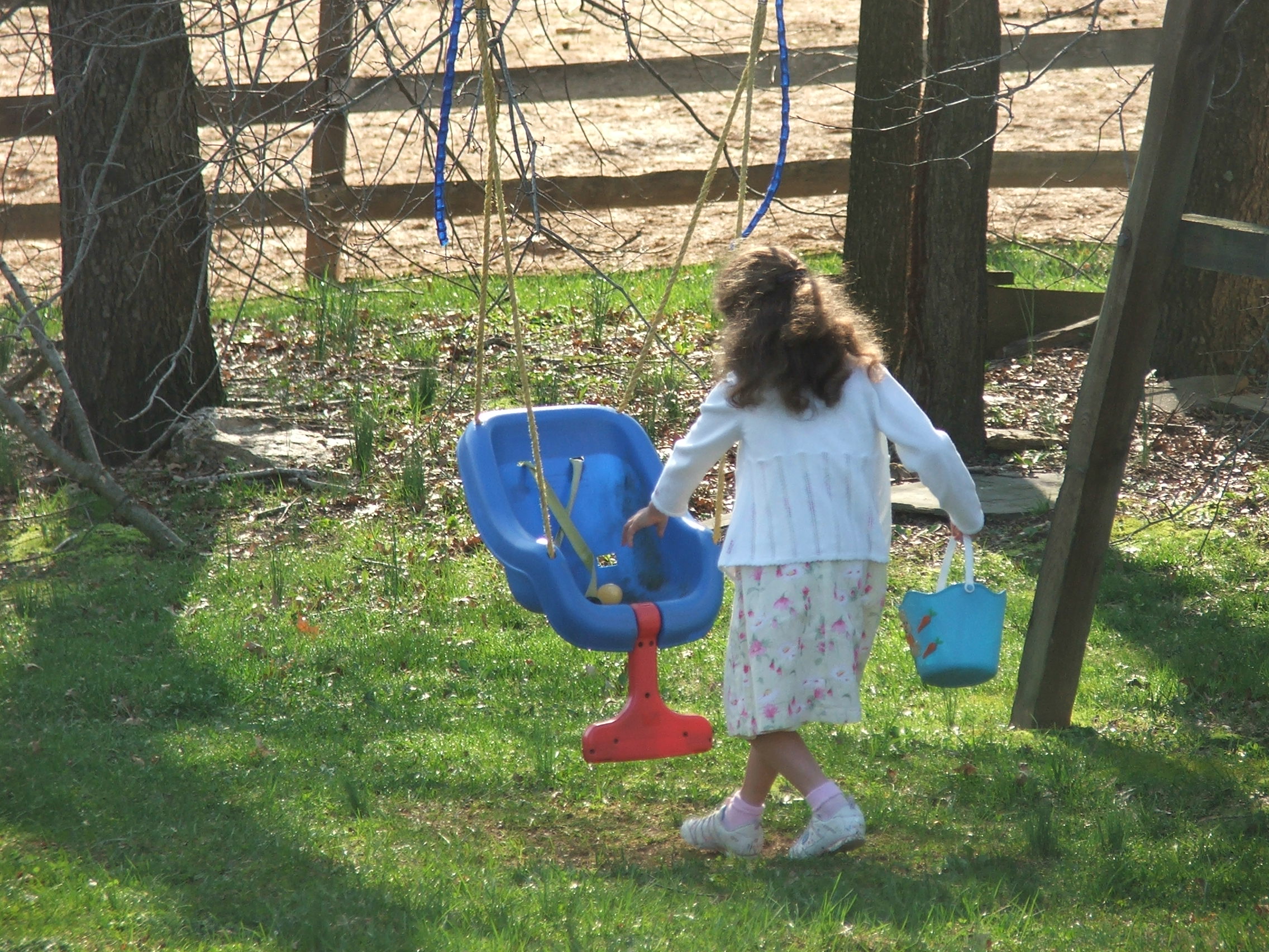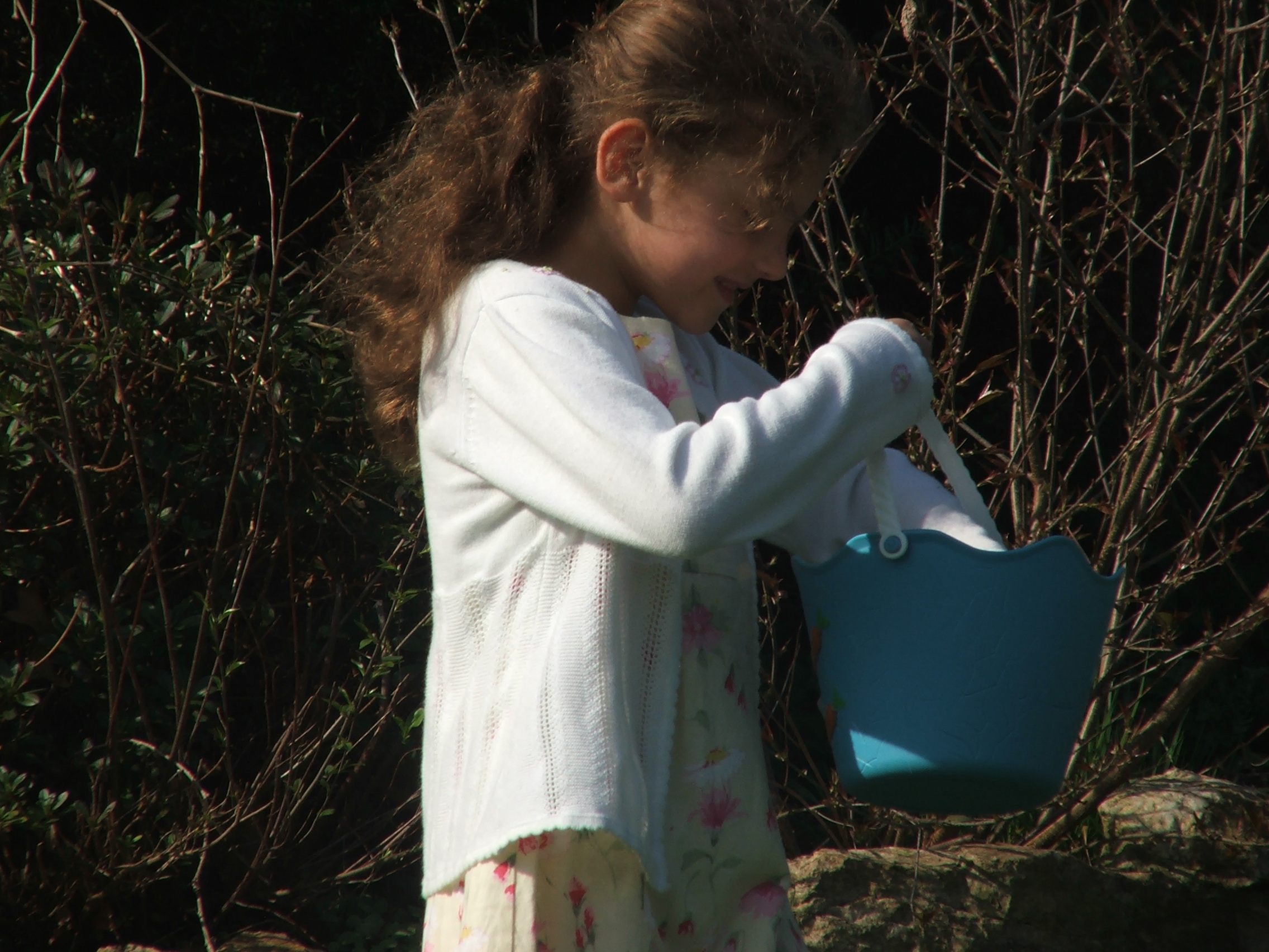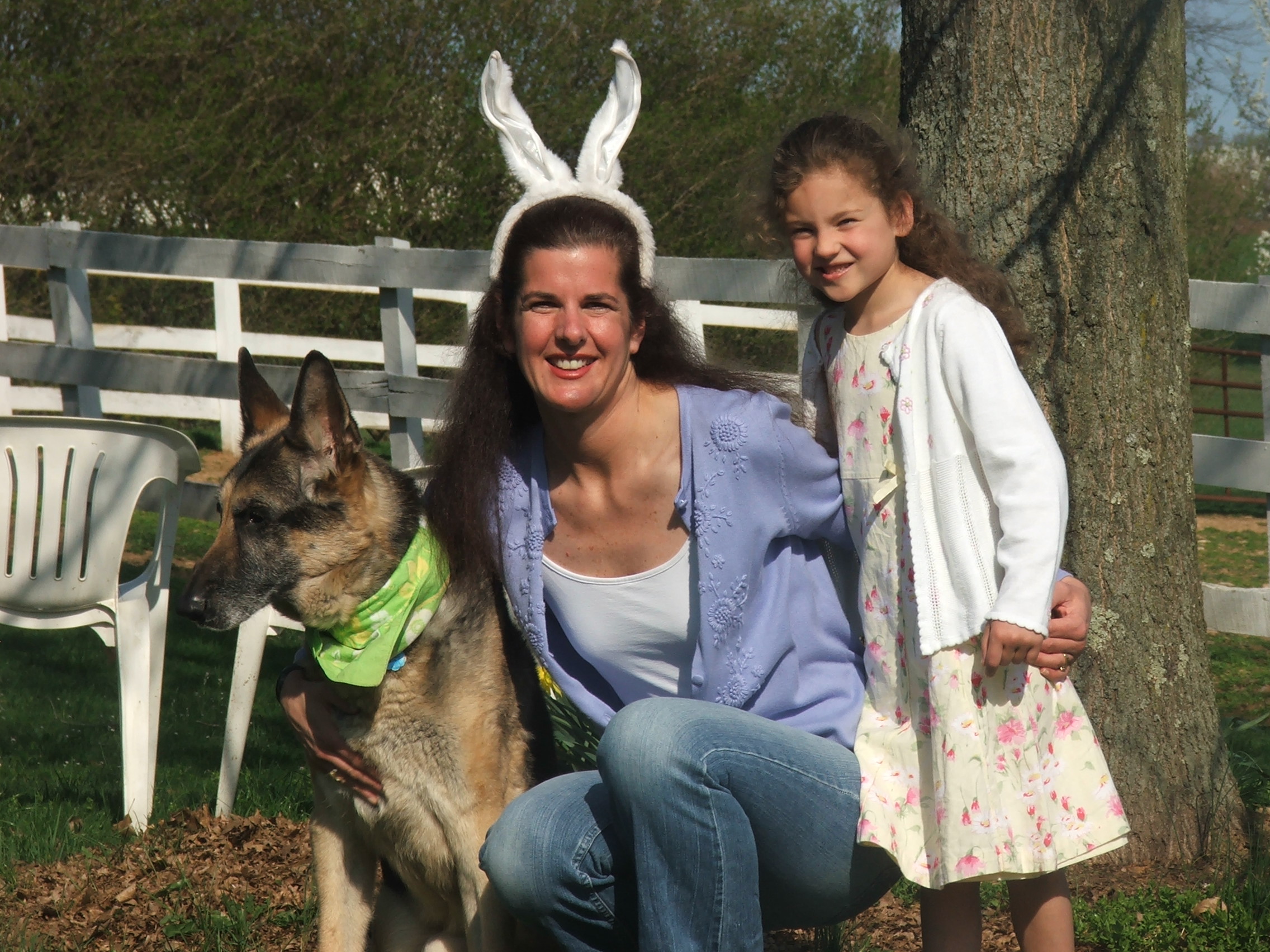 Easter was a glorious day at Shepherd Farm. The flowers were in full bloom and the trees were covered in buds, promising to open up this week in the warm spring days ahead. The Easter egg hunt was a success and Dapple, the burro, was interested to see that Susan’s ears looked alot like hers — today.