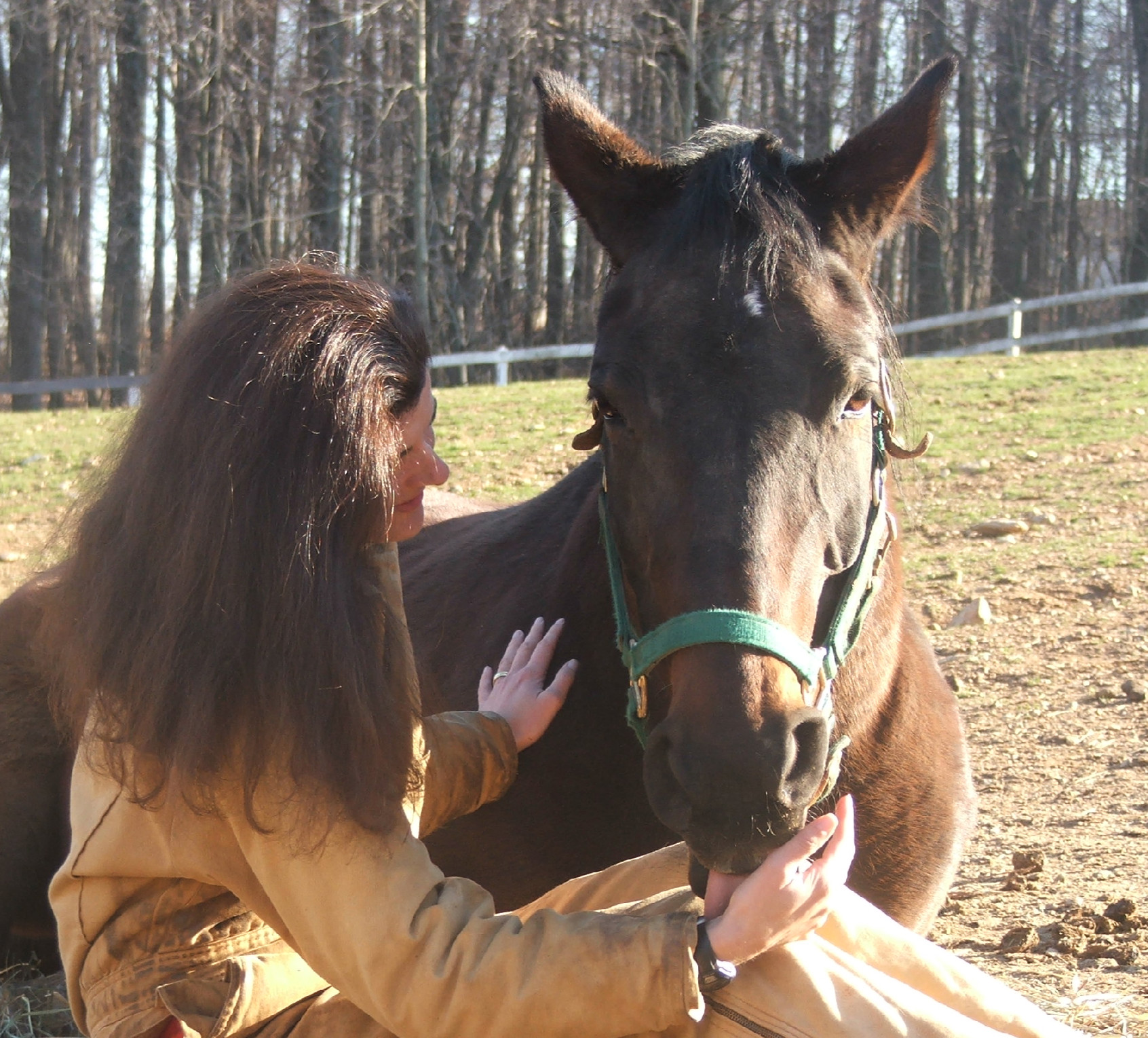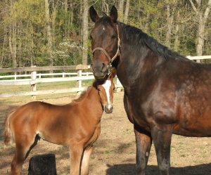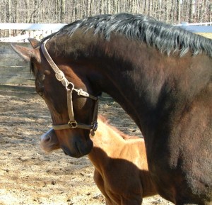 Profile. Treveri (“Trevi”) was imported from Germany in 1991. She was our foundation mare and the matriarch of our Farm. Trevi was from the traditional German Hanoverian Trapper lines. She had beautiful conformation with a strong shoulder and solid bone, yet still had an elegant, feminine head. Trevi had a lovely overtrack at the walk, an elegant trot, and a beautiful rythmic canter. Probably the most important trait that Trevi passed on to her foals was her temperament. Trevi was nurturing and unflappable. As her pictures above show, Trevi moved with an air of dignity, a love of her offspring, and a tremendous sense of trust and bonding with her owners.
