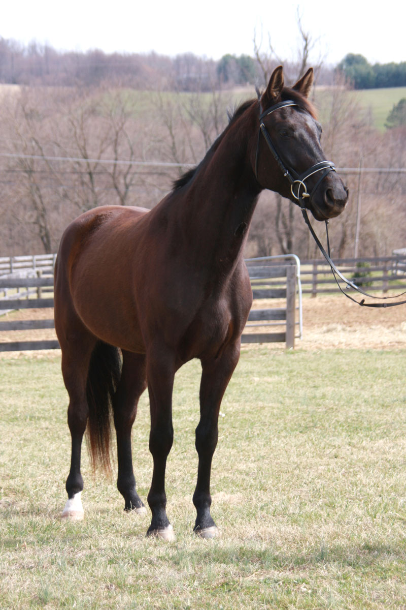 Night Finish LS. Tardy is a 2007 liver chestnut Hanoverian gelding by